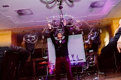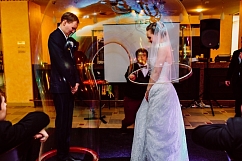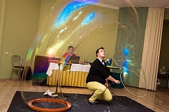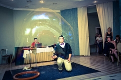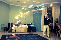 Если Вы еще не решили как удивить гостей на Вашей свадьбе, то Вы не прогадаете заказав невероятное шоу мыльных пузырей, на котором артисты будут выдувать сказочно красивые мыльные пузыри под волнующие мелодии. Маленькие пузырики будут парить в воздухе и обвивать жениха и невесту в момент танца, а так же Вы побываете в пузыре невероятных форм и размеров.